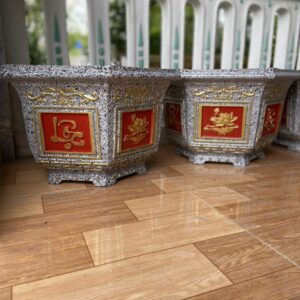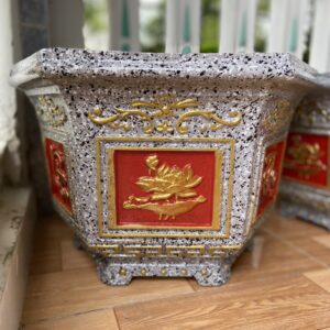Chậu với chất liệu xi măng đúc, sơn màu nước và phủ bóng bên ngoài, chống thấm bên trong.