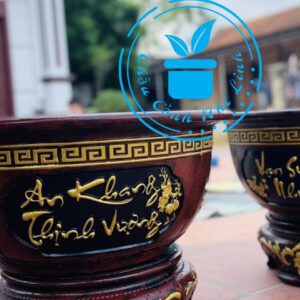 | Phủ bì: 60cm, Cao chậu: 26cm Lọt lòng: 52cm, Sâu chậu: 24cm Đôn xoay : rộng 34cm, cao 21cm |
